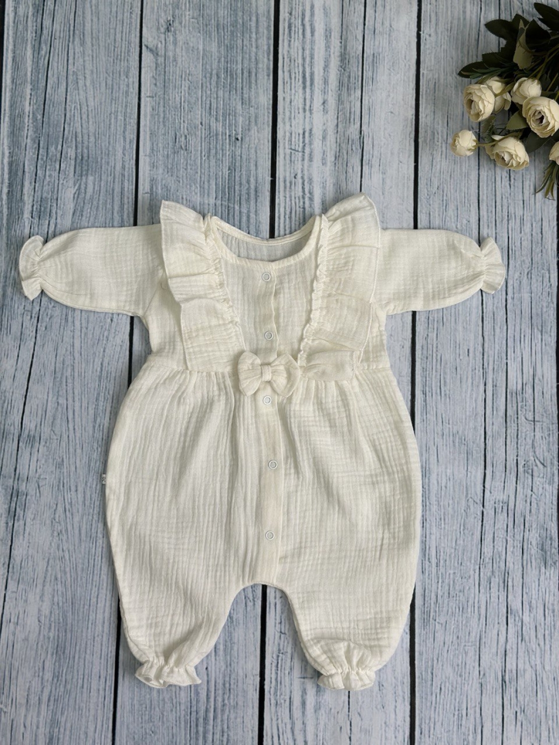 Купить оптом 322-СЛ. Платье из муслина детское, хлопок 100% сливочный, р. 74,80,86,92 в Нефтеюганске