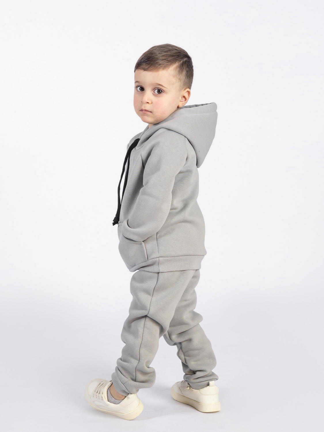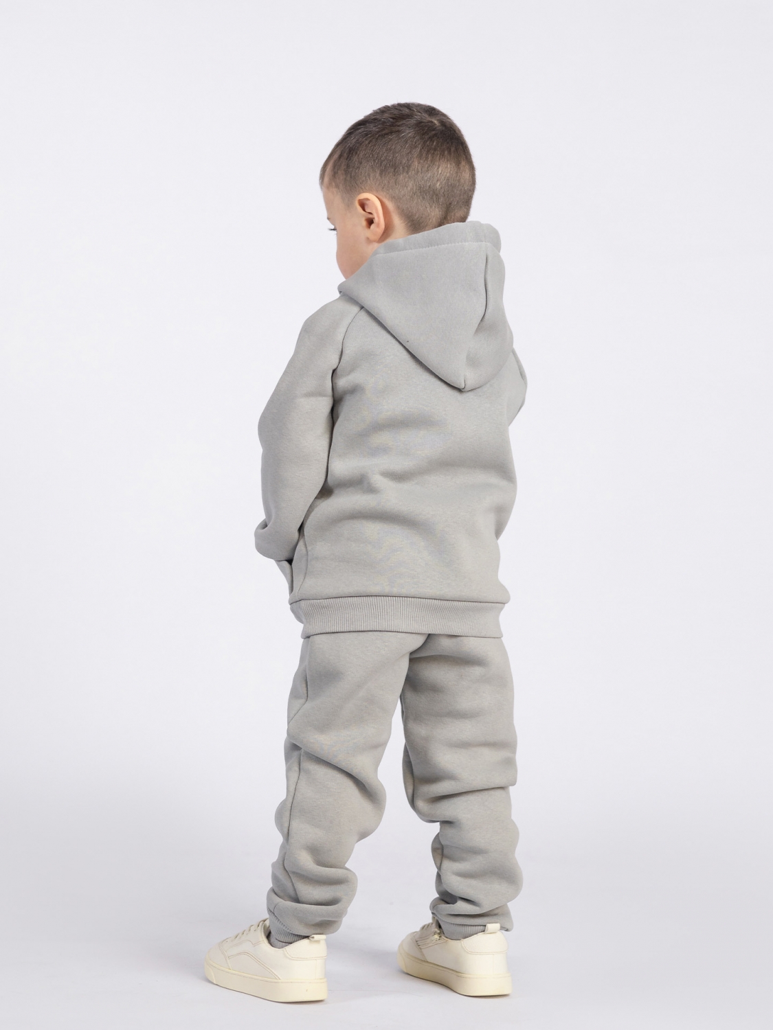 Купить оптом 296-С. Свитшот с капюшоном + Штаны, хлопок 65%, 35% ПЭ, 3-х нитка (начес) серый 122,128,134,140 в Нефтеюганске