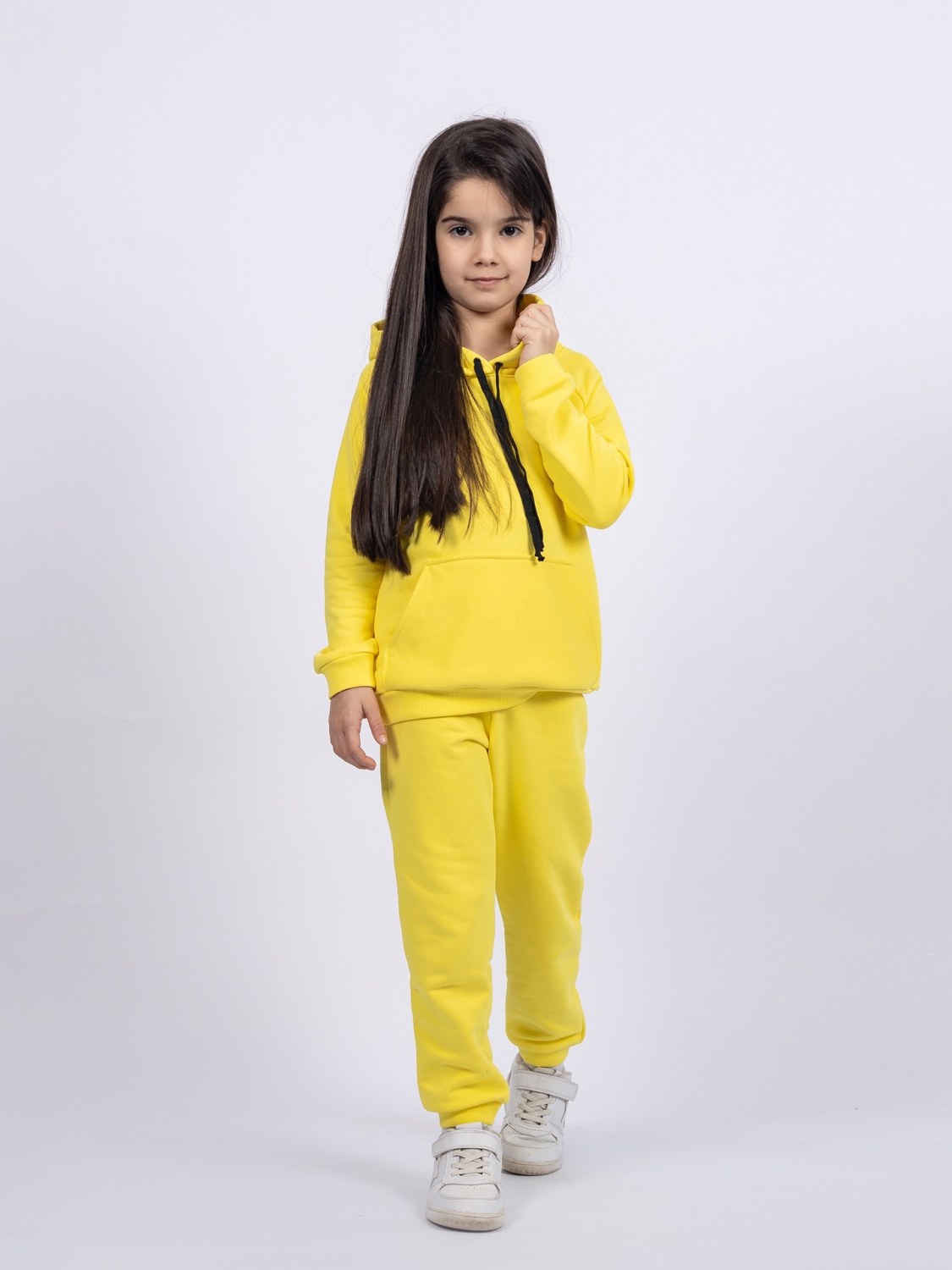 311-Ж. Свитшот с капюшоном + Штаны, хлопок 65%, 35% ПЭ, 3-х нитка ( без начеса) желтый 80,86,92